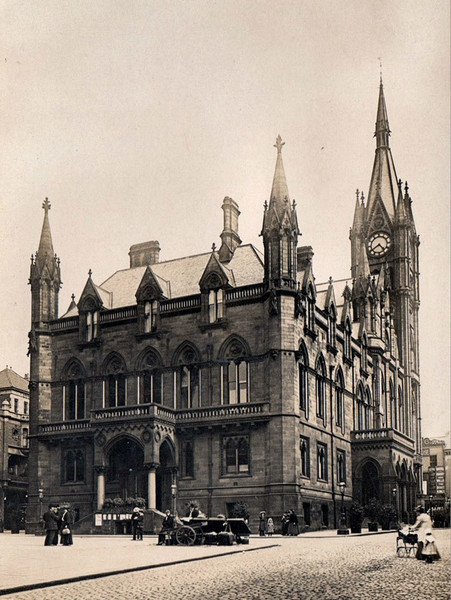 George Gilbert Scott’s Town Hall standing majestically in the Market Square, Preston. 1886—1947